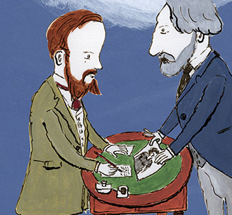 The name of the exhibition – "The Portrait Game" – is not accidental: Turgenev was playing this game with his acquaintances for over 20 years, considering it very useful for a writer. The writer himself will be telling about the game at the exhibition, especially for which was created the video film Dostoevsky and Turgenev. A Dialogue, starring the BDT actors Alexander Kudrenko and Vassily Reutov. The dialogue of the two writers is projected onto opposing walls. Life-size Dostoevsky and Turgenev will be talking with each other across the auditorium, and the visitors, while familiarizing themselves with the traditional part of the exhibition, will be witnessing their interaction.